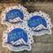 Set against a crisp white background, waves of blue shimmer as the coral moons glow in every shade of azure, inviting calm that’s truly out of this world.